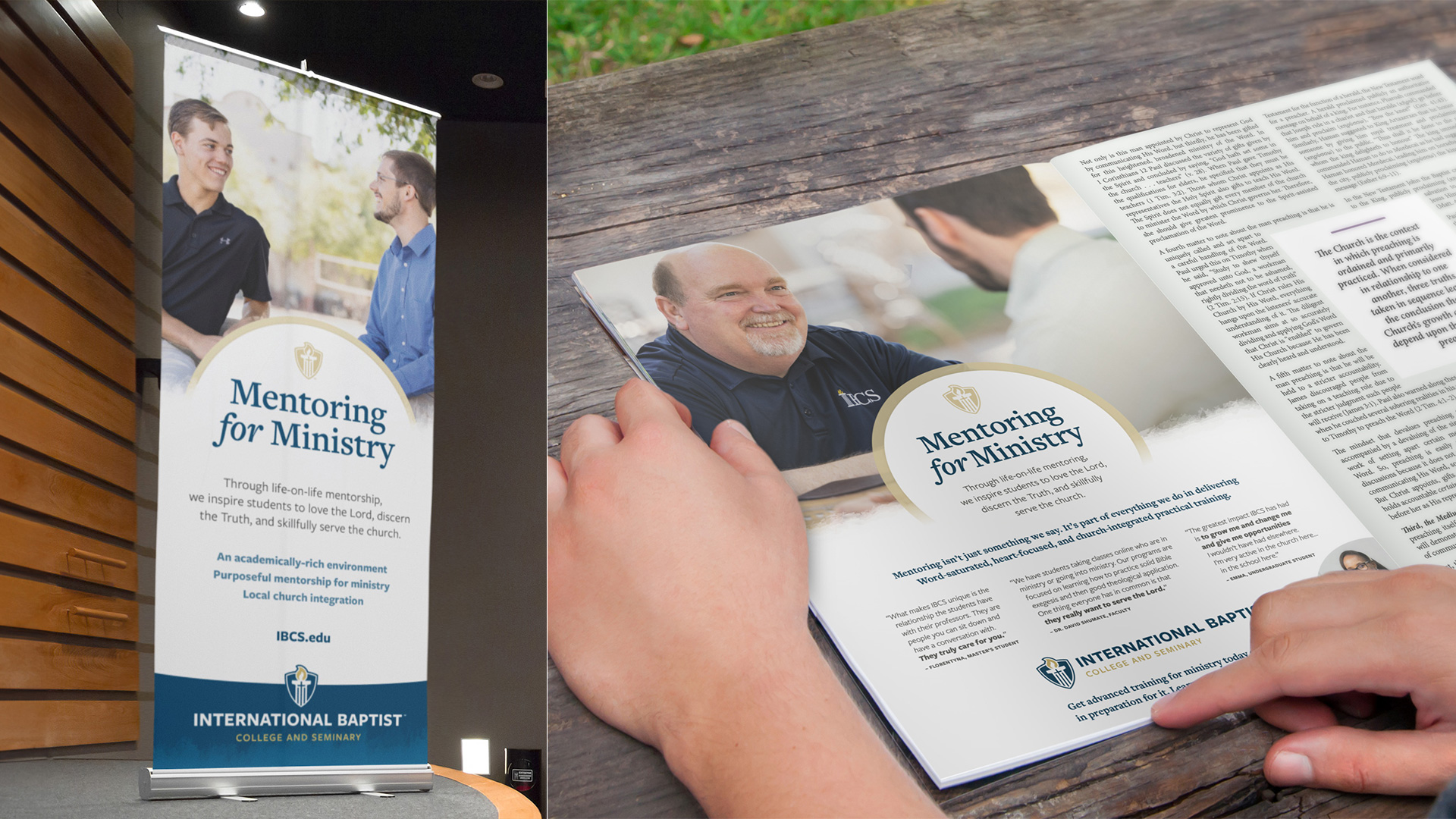 IBCS's strength has always been its focus on one-on-one mentorship, and this came out in the surveys we conducted with both leadership and students. Unlike other colleges, every IBCS student is assigned a mentor when they begin, and the concept of mentorship for ministry is woven throughout every program, providing a practical, real-life balance of experience to classroom teaching. We brought this unique advantage to the forefront in clear, simple tagline as well as integrating it as the central theme across their purpose and vision statements.